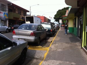 This blows my mind how the yellow line has no significance at all in Costa Rica. Why even bother? It follows the same guidelines in North America yet no one ever gets a ticket, much less towed. Think how much revenue the town could generate if they just enforced the yellow line? On the bright side I love being able to park wherever I want…