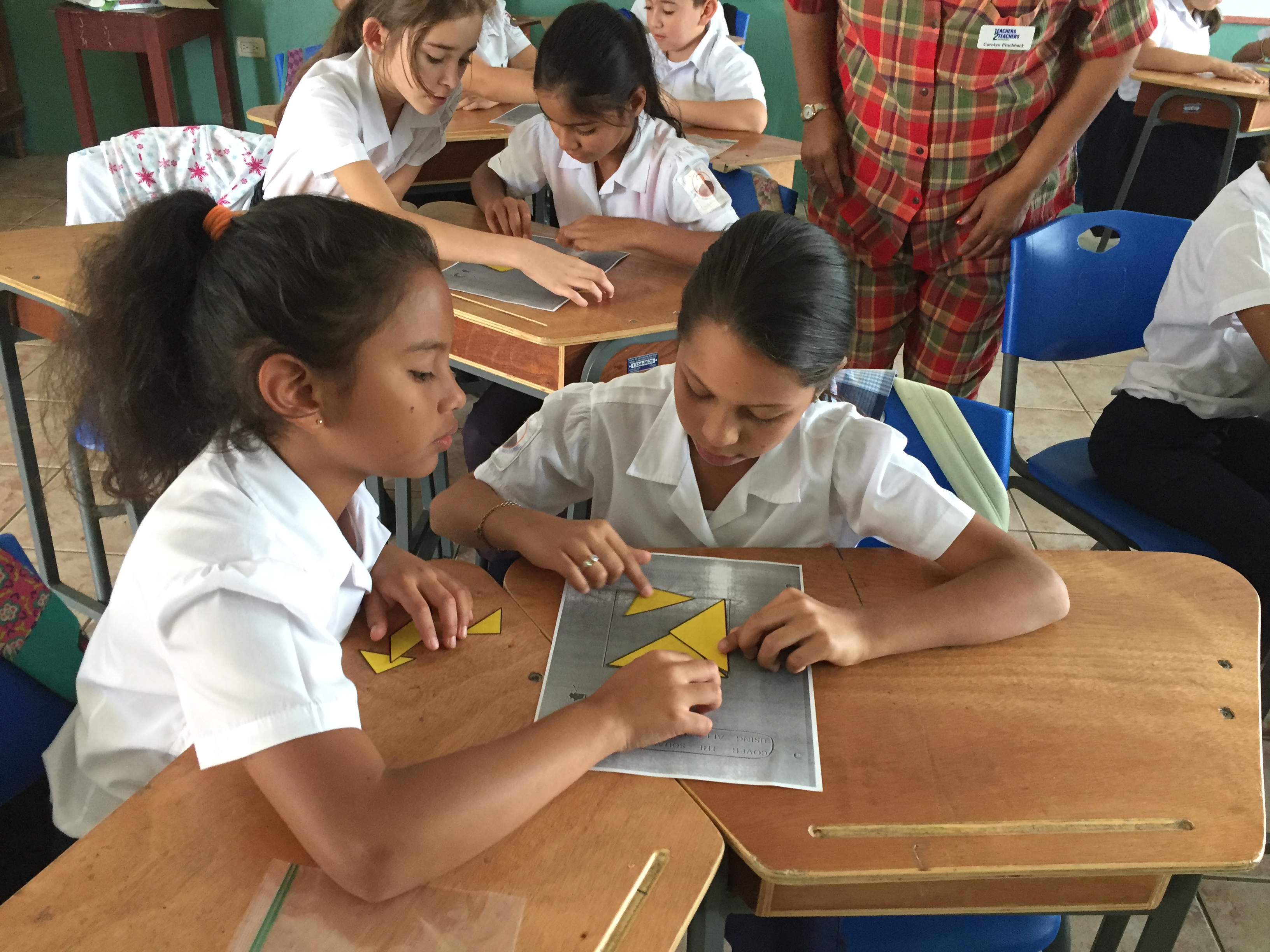 On a classroom level, we were also able to contribute to the learning process. One of our initial observations was that students spent a lot of time sitting and reciting/reading information. Luckily, the classrooms were equipped with flat screen TVs and access to the internet, but besides that it was hard to identify much innovation in student engagement. That observation lasted until day two when the teacher turned to us and offered us her group for 30 minutes. With the theme of the week to improvise, we knew we couldn’t let the moment pass, even if we didn’t have anything prepared. It just so happened, we had shared an animal book with an adjoining tangram activity previously with the teacher and it fit right into the science review she was doing with the class that day.